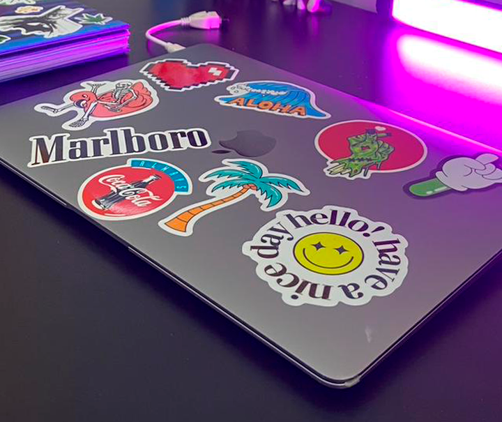 Personalização com adesivos pensada para refletir seu estilo e sua rotina. O equipamento continua o mesmo — a identidade visual, não.